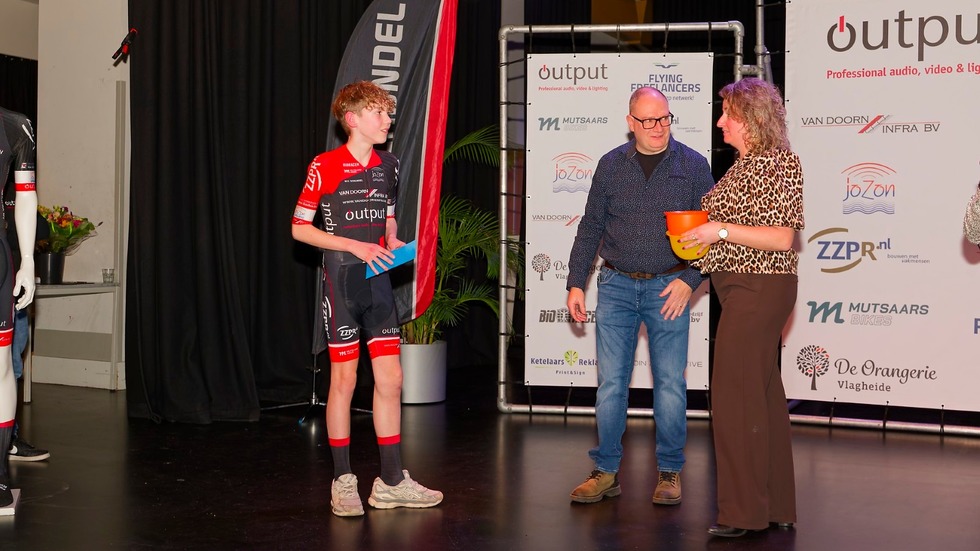 Nadat de jubileumcommissie, sponsoren en trainers in het zonnetje waren gezet, werden alle jeugdrenners/rensters het podium opgeroepen, wat meteen voor een vol podium zorgde. De Kei van Schijndel werd uitgereikt aan jeugdlid Max Hermans.